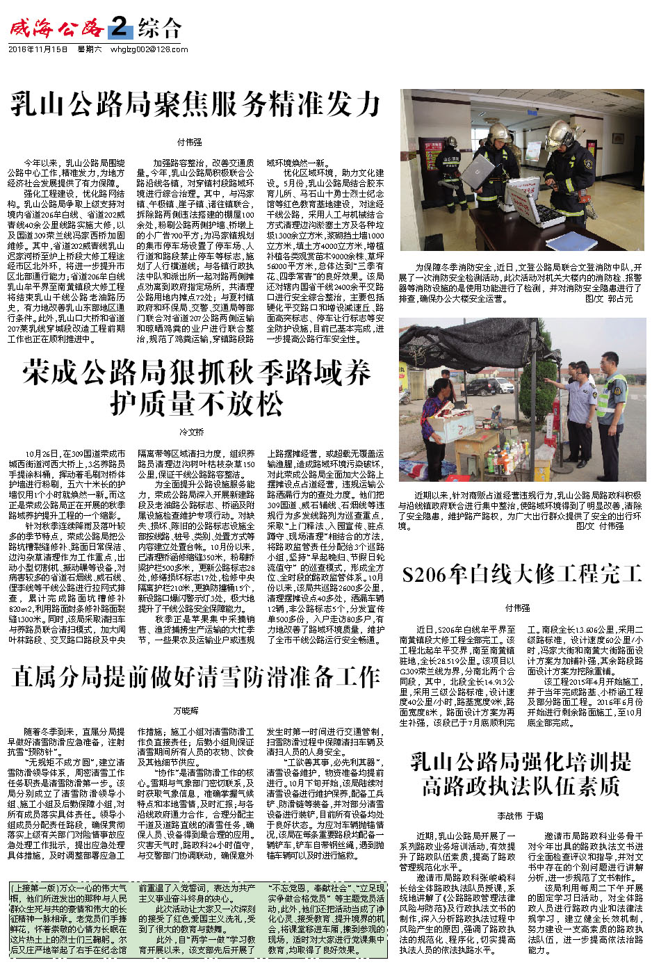 发布日期:2016-11-18 信息来源: 威海市公路局  作者: 威海市公路管理局  浏览次数:  字号:[ ]
